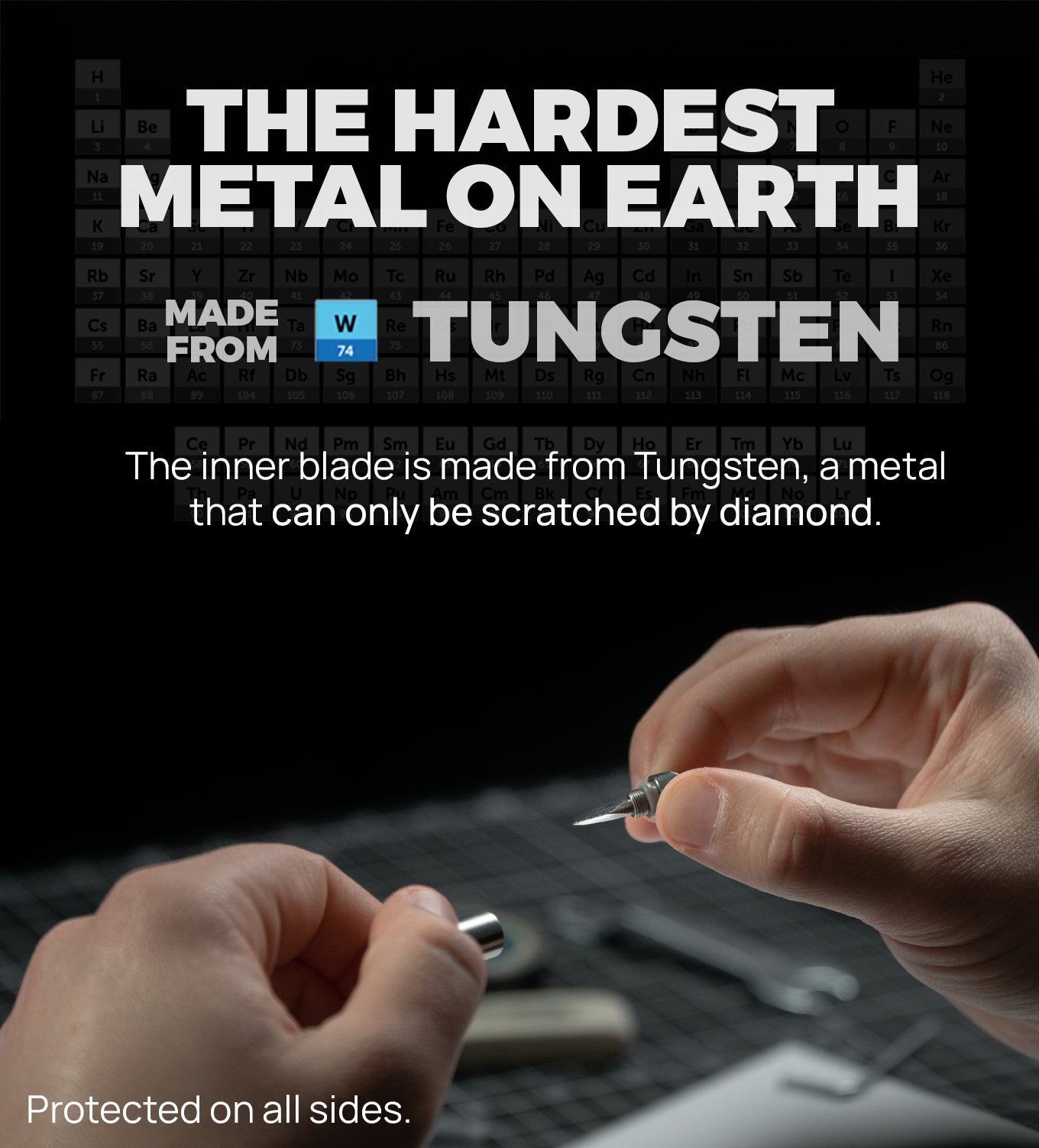 Super tiny Tungsten blade that never dulls and lives on your keys.